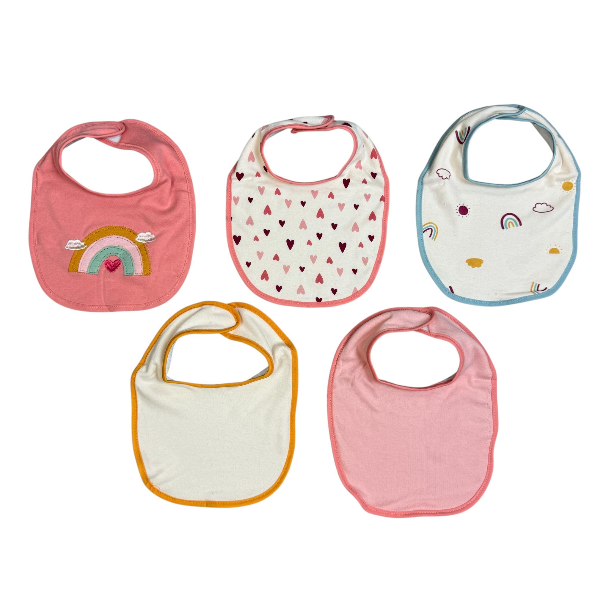 π 5-Pack Baby Girl Bibs β Rainbow, Hearts & Pastel Prints β Soft Cotton