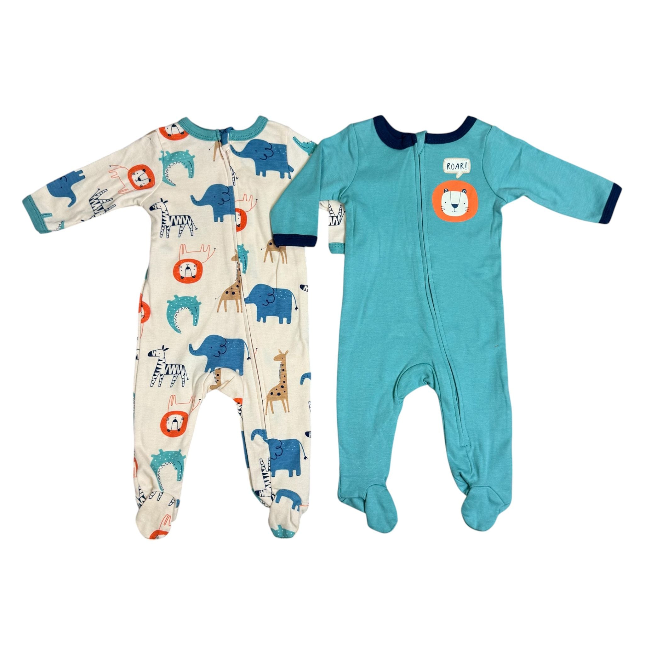 ๐Ÿฆ Baby Boys 2-Pack Footed Sleepers โ€“ Safari Animals & Lion โ€œRoar!โ€ Theme ๐Ÿ˜๐Ÿฆ’๐Ÿฆ“