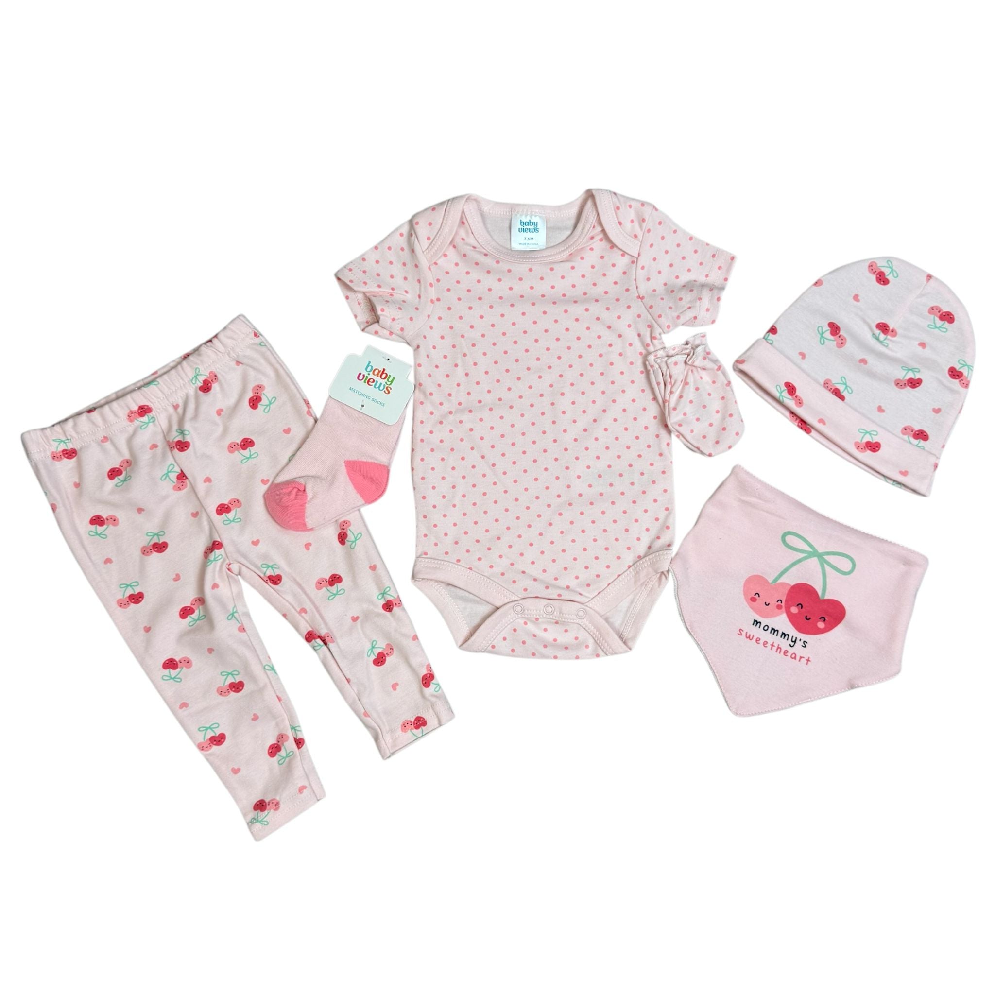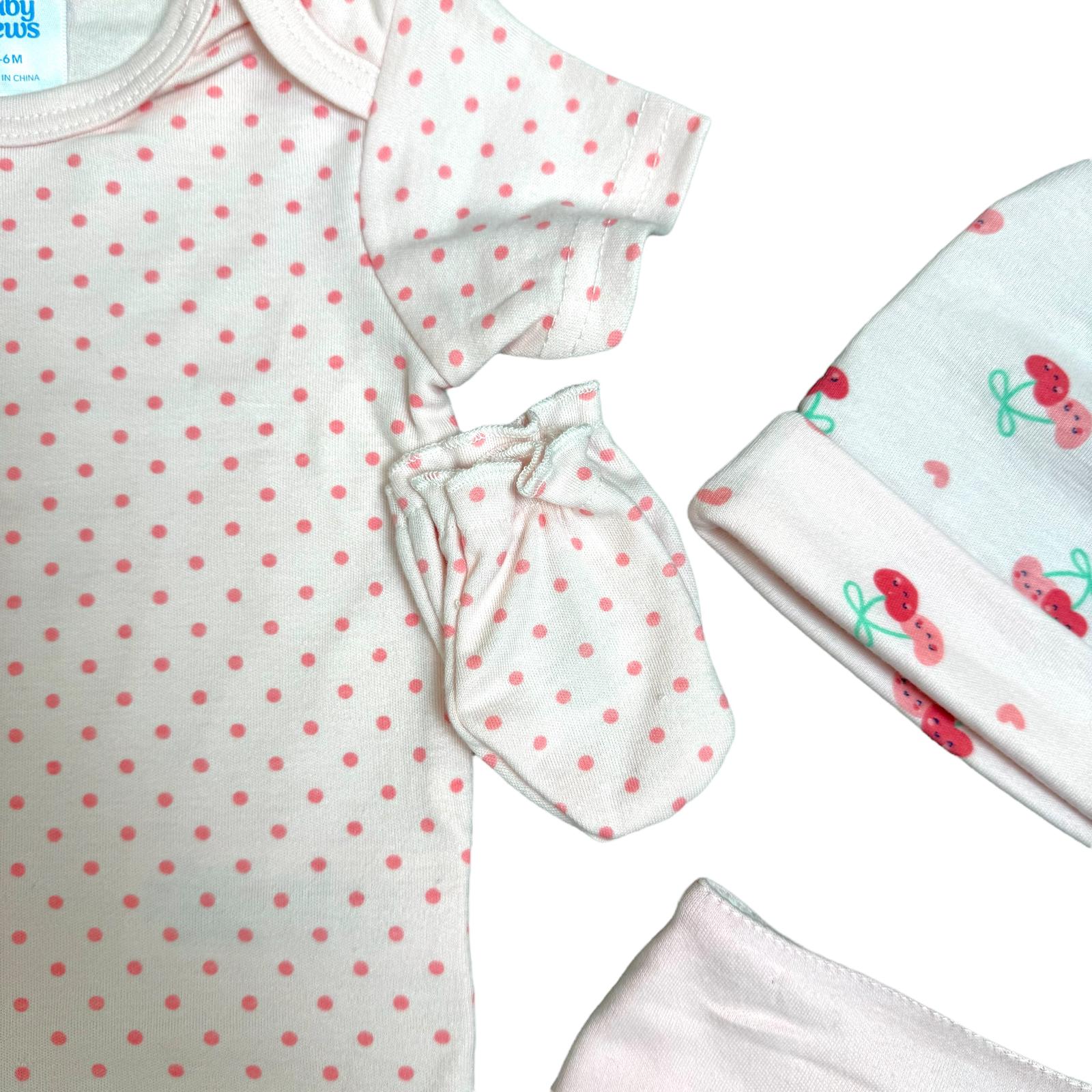 🍒 Baby Girl 8-Piece Clothing Set – Cherry Print – Baby Delius – 100% Cotton