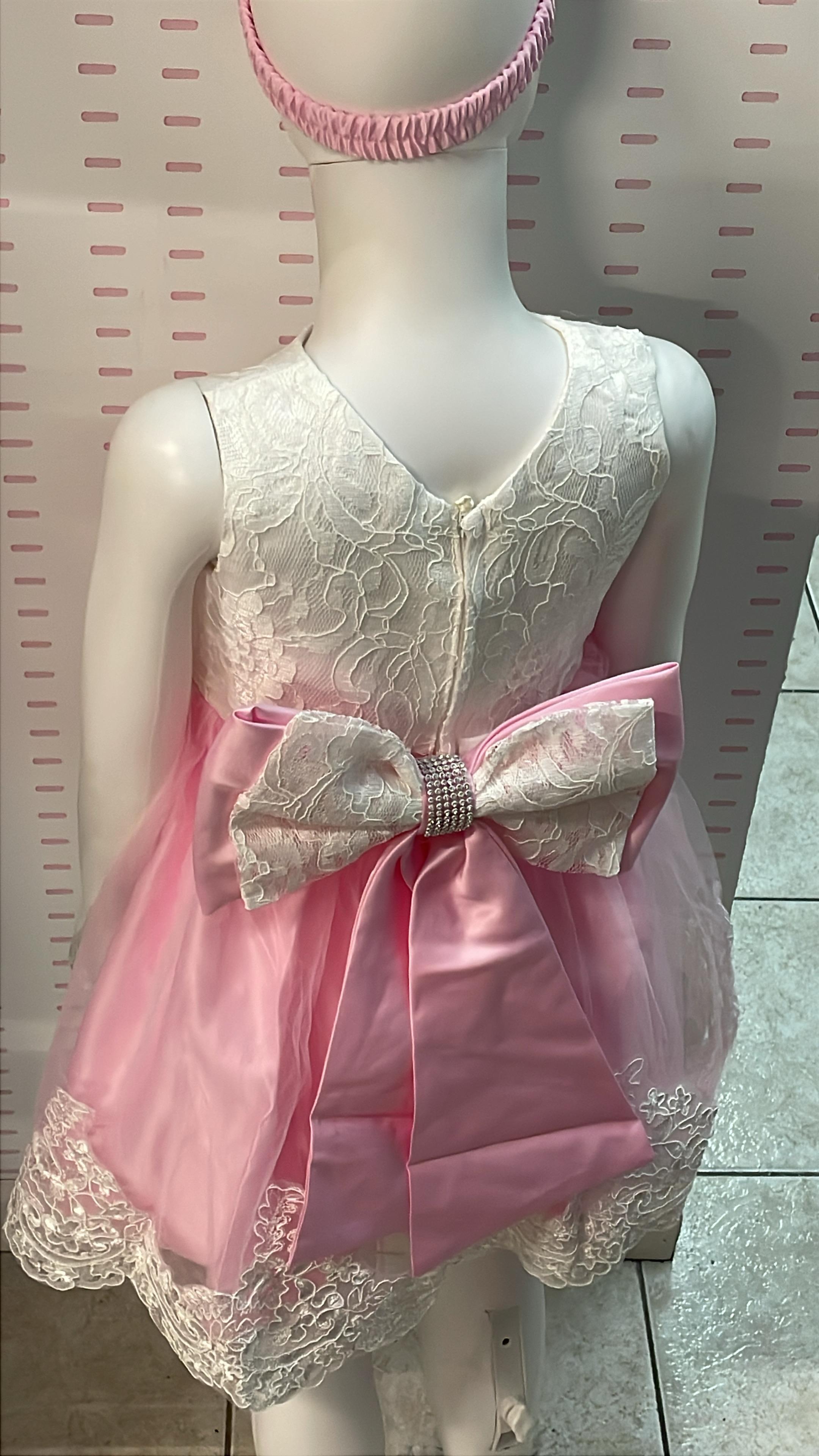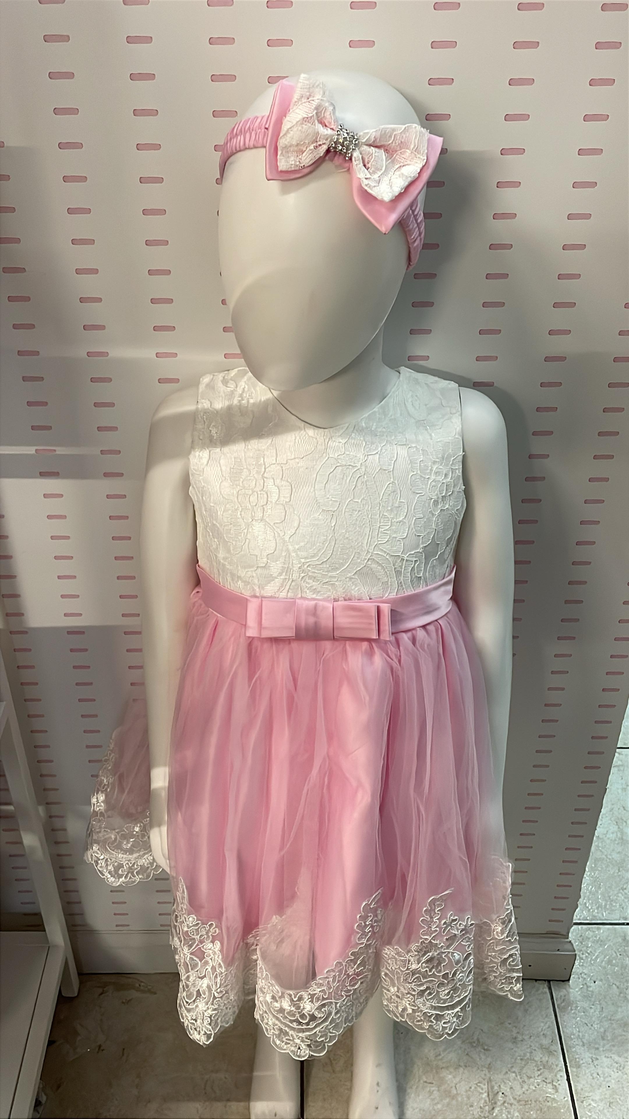 π Baby Girl Pink Lace Party Dress with Matching Bow Headband β 6β24 Months