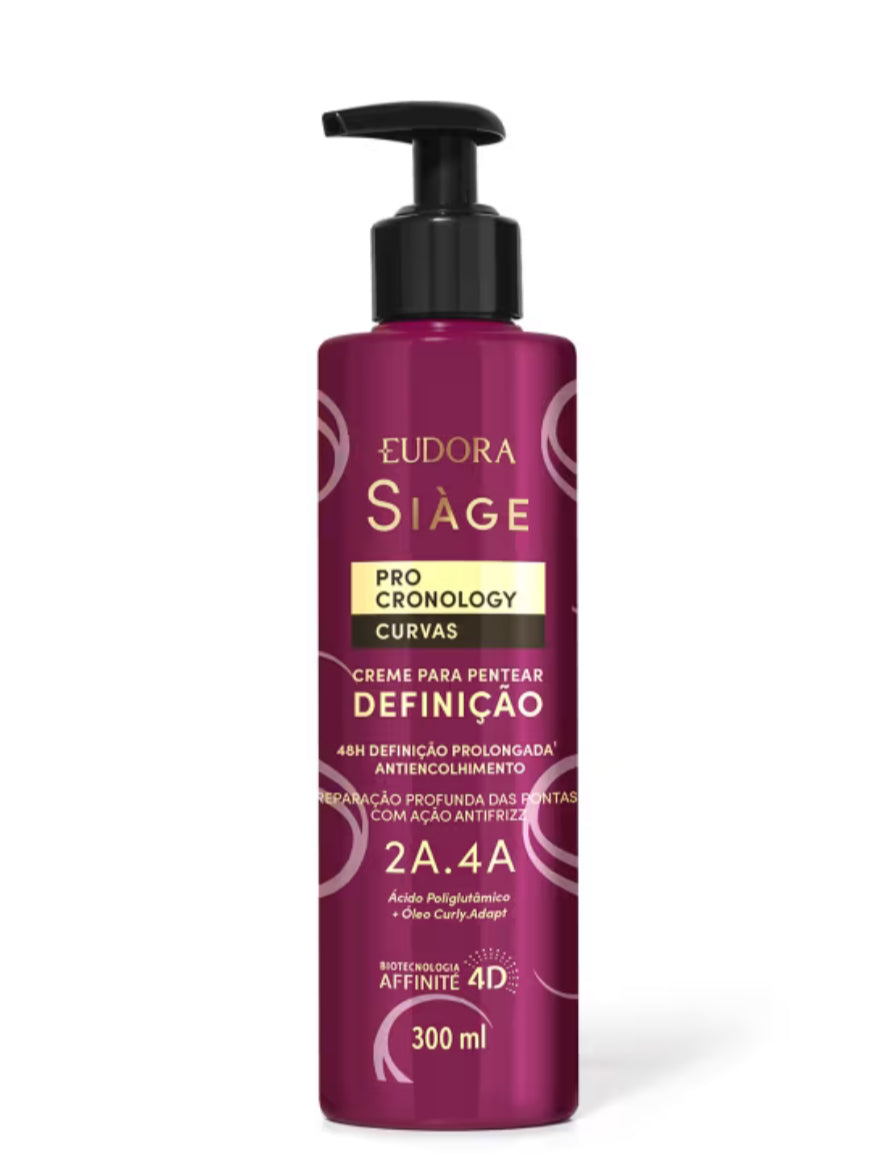 O Creme para Pentear Definição Siàge Pro Cronology Curvasoferece até 48h de definição para seus cabelos e ainda conta com uma poderosa ação antifrizz que reativa a curvatura natural dos cachos e crespos.