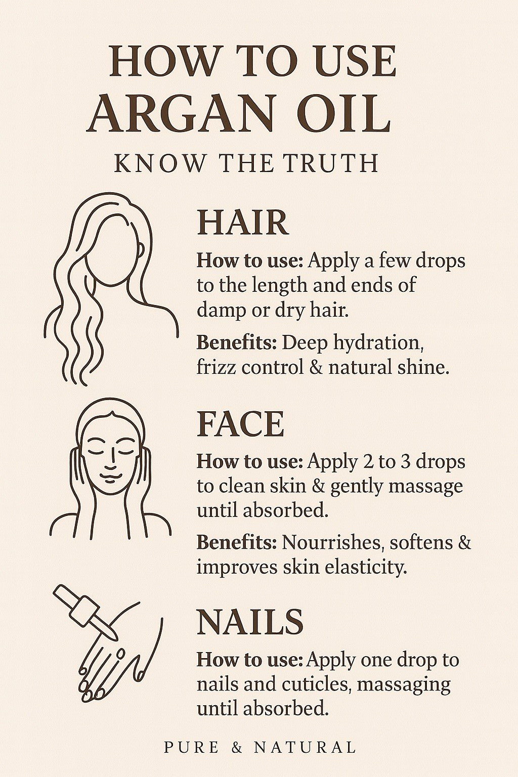 Discover the power of Pure & Natural 100% Pure Moroccan Argan Oil, a cold-pressed, nutrient-rich oil that restores shine, softness, and vitality to your hair, skin, and nails.